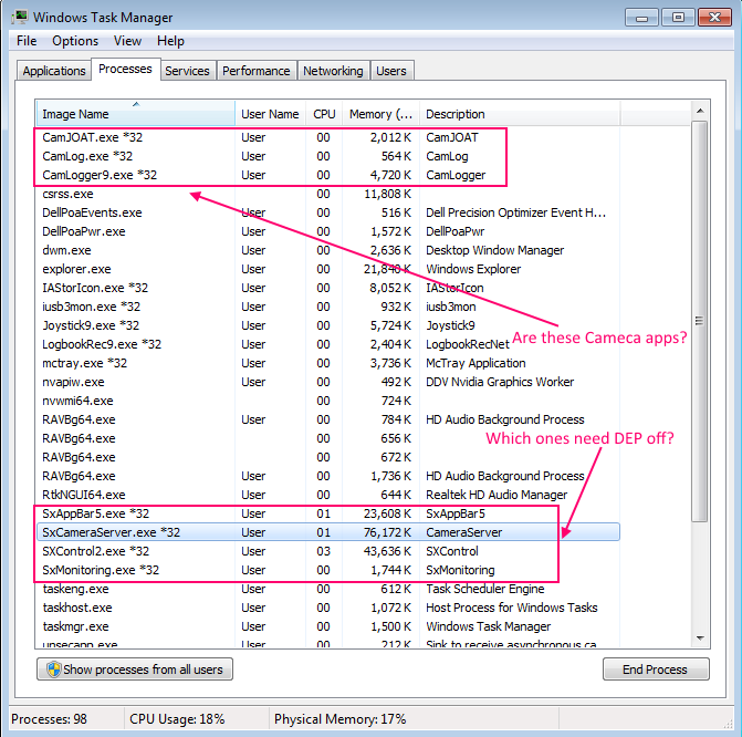 We'll try playing with the DEP settings now...