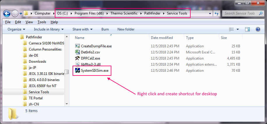 Now for best results (e.g., running the Pathfinder software in simulation mode) one should also make a shortcut on their desktop for the simulation interface app (which is still called SystemSIXSim.exe). This allows the Pathfinder software to run in simulation mode. I'm not sure this is actually necessary for off-line processing but it is fun to play with.