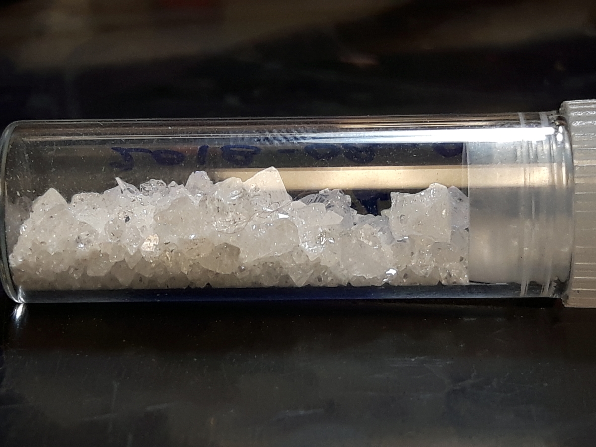 I haven't mounted any of the material yet, as I'd like first to grow PbWO4 (stolzite), CaMoO4 (powellite), and PbMoO4 (wulfenite) and place them all in a single mount.