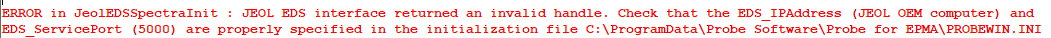 Quote1. You should run a single EDS spectrum acquisition in the JEOL software prior to any EDS acquisitions with Probe for EPMA. Doing seems to get the JEOL software interface into a correct state. Just one EDS acquisition for each time starting the JEOL software.