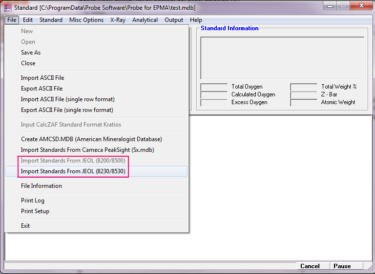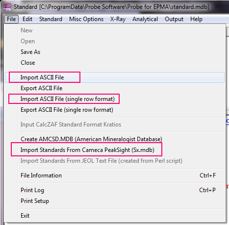 Paul never did finish up his script for importing the JEOL standard compositions from the JEOL 8200/8500 UNIX software (as mentioned in the previous post), but we did implement a method to import JEOL standard compositions from the 8230/8530 JEOL PC software: