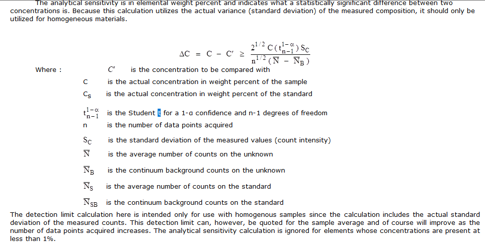 Analytical Sensitivity (t-test) in Elemental Weight Percent (Average of Sample):