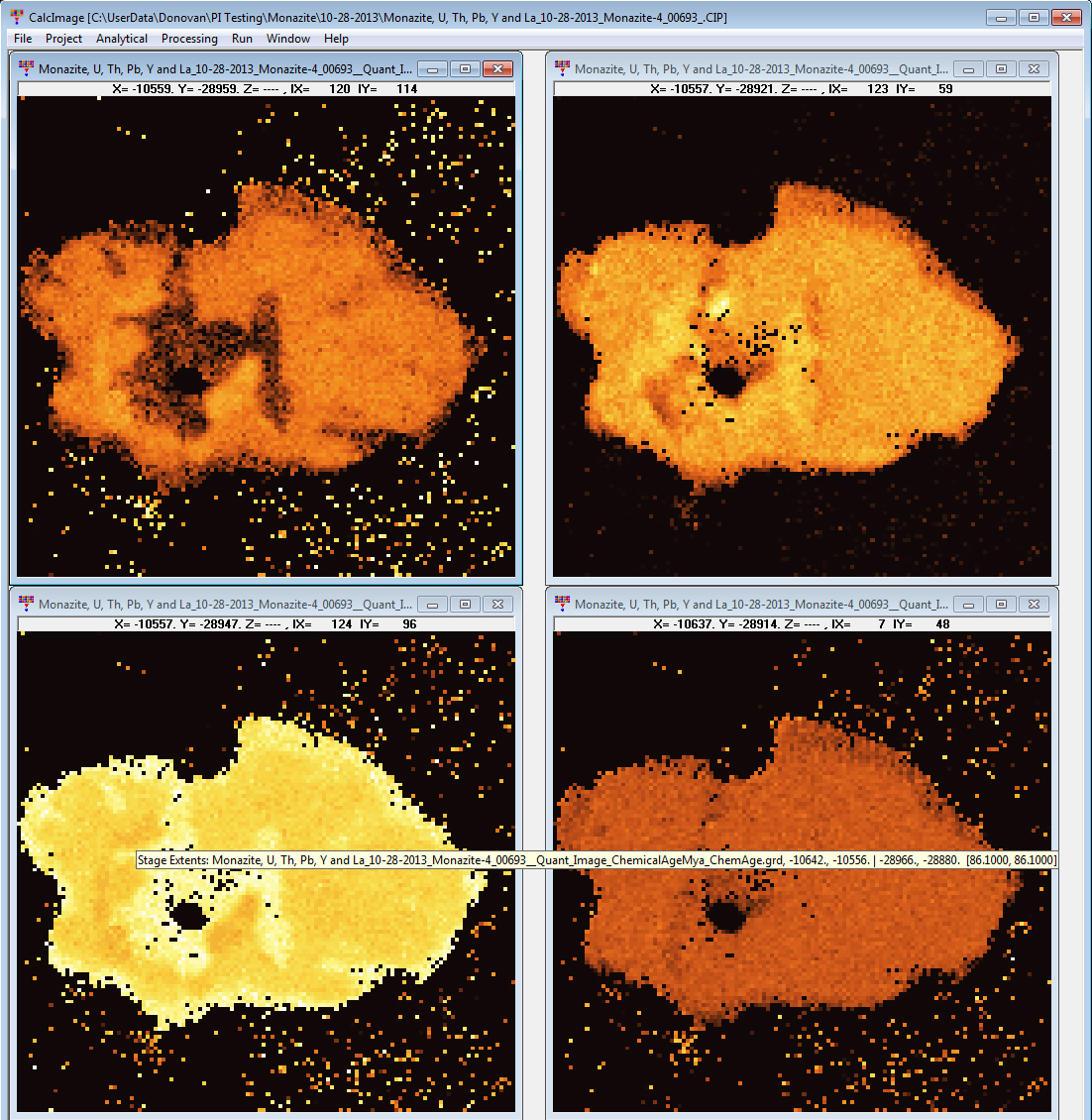 Note that the Z values are in elemental weight percent values.  By applying the method of Montel (from Allaz) we can calculate the chemical ages using this menu in CalcImage: