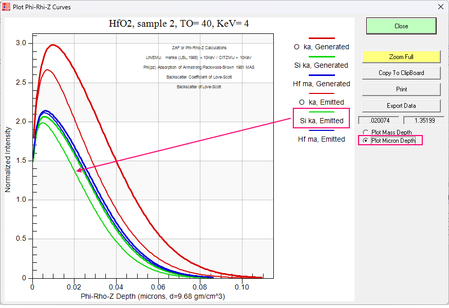 Using this method, at 4 keV we obtain the following curves for HfO2 with a trace of Si: