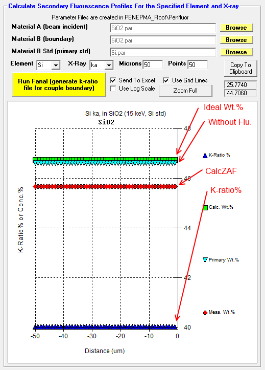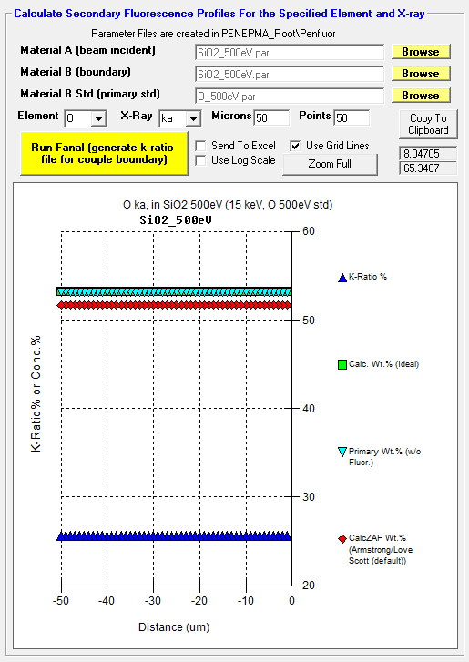 Using SiO2 for both our beam incident and boundary material (and Si as our primary standard to back out the matrix correction), we obtain this for Si Ka: