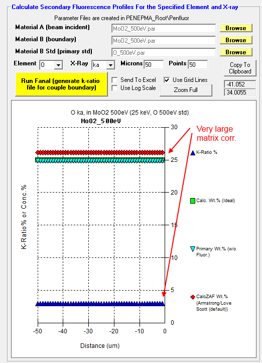 And here are the oxygen k-ratios in MoO2 at 25 keV, a rather large matrix correction around 800-900%!