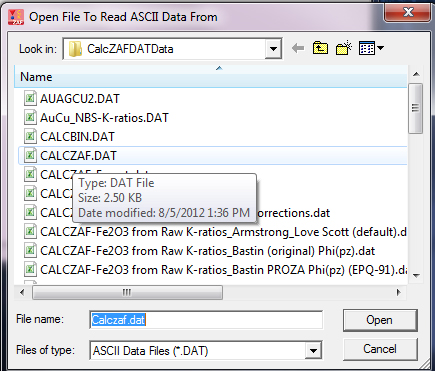 See the example CalcZAF.dat file for examples by clicking the File | Open CalcZAF Input data File menu: