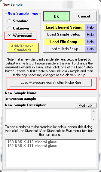 I should mention that if you're attempting to have a single database containing all your wavescans for selecting off-peak positions, you can also simply create an empty PFE MDB database and then just import all your wavescans into it using the Load Wavescan From Another Run button in the New Sample Setup dialog as seen here: