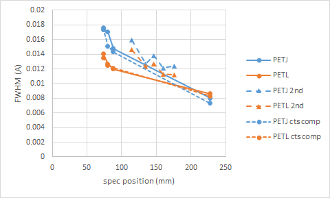 I've been trying to do some measurements to determine if the crystals are Johann or Johansson. With Johann the resolution degrades to low angle.