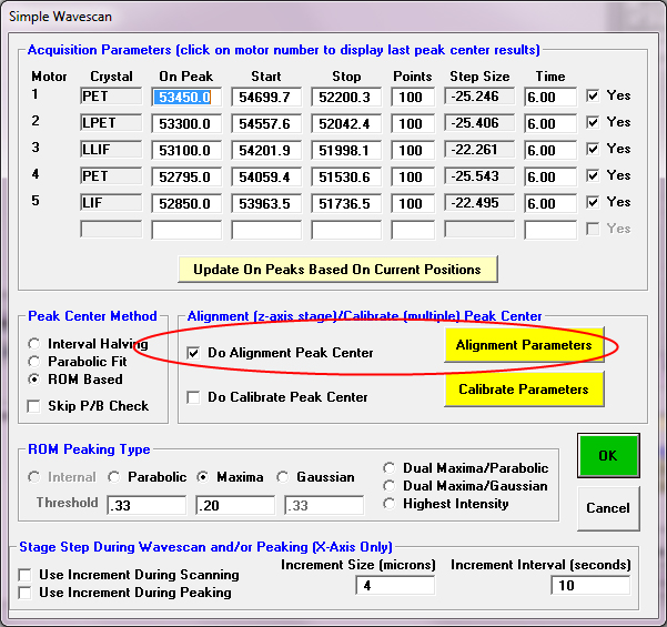 The Startwin application has a nice feature for this alignment procedure under Peak/Scan Option button...