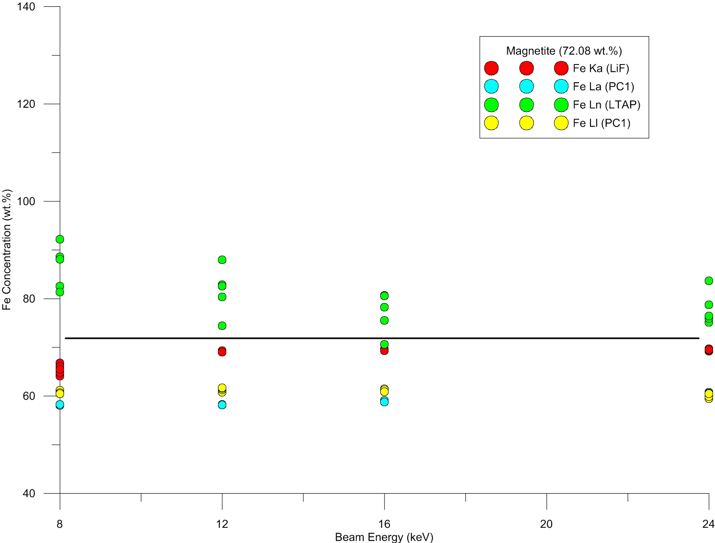 The class learned that it's a good idea to stick with the Fe Ka emission line for quantification!    :D