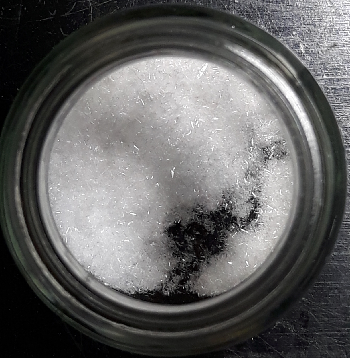 With a ton of help from fellow forum member crystalgrower, I've just completed my first SrCs4(PO3)6 synthesis run.  I haven't had a chance to look at the crystals under the microscope yet, but the habit appears to be consistent with the crystal system (hexagonal).  The run produced several thousand small, acicular crystals that I'll intend to use as seed crystals in subsequent runs.  In the photo below, the width of the field of view is about 35 mm.  The largest crystals are perhaps 4 mm in length but very narrow.  I'll probably start the next run to produce larger crystals late tomorrow.