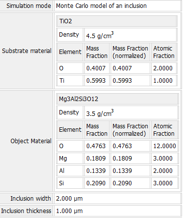 I simulated an inclusion of pyrope in rutile at 20kV