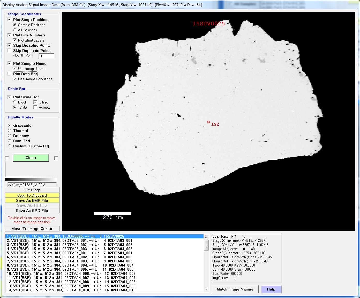 However, before outputting all of these BSE images (by using Output | Save Images to BMP Files),