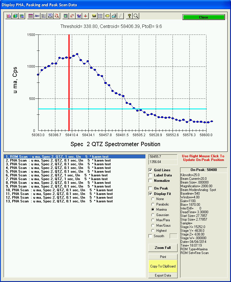and I was looking at the peak and decided it should be at 58410 instead. So I right-clicked to update the on peak position.
