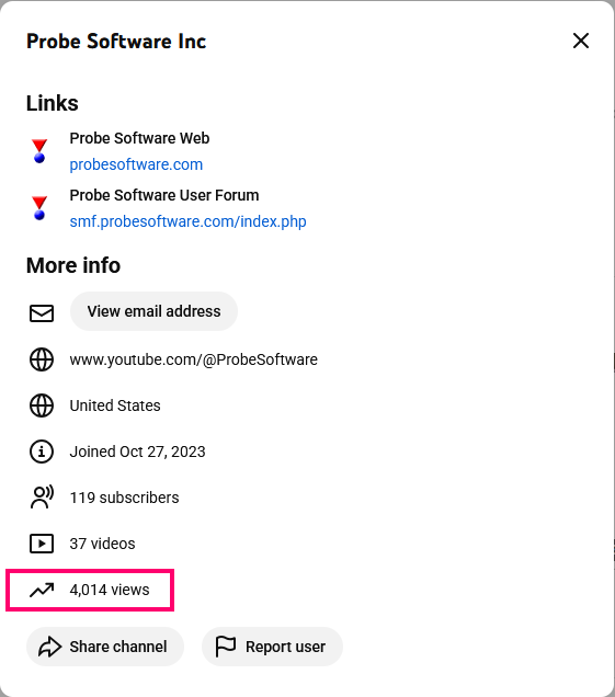 The Probe Software YouTube channel is now up to 2,500 views: