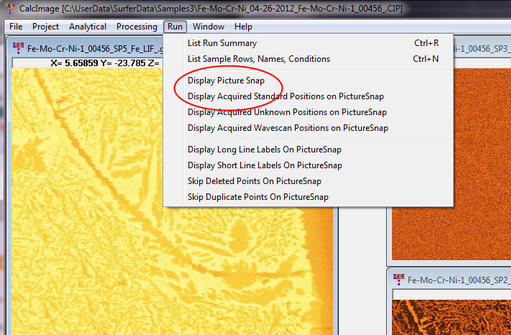 For example, this allows correlation of image data from another source such as an SEM with quant WDS data from your CalcImage project.