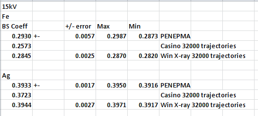 I've just run a quick comparison of the BS coefficient calculated using Win X-ray, casino and penepma for Ag and Fe metal (initially to check upbound fraction in penepma-res.dat was the bs coefficient-but then the results where interesting.)
