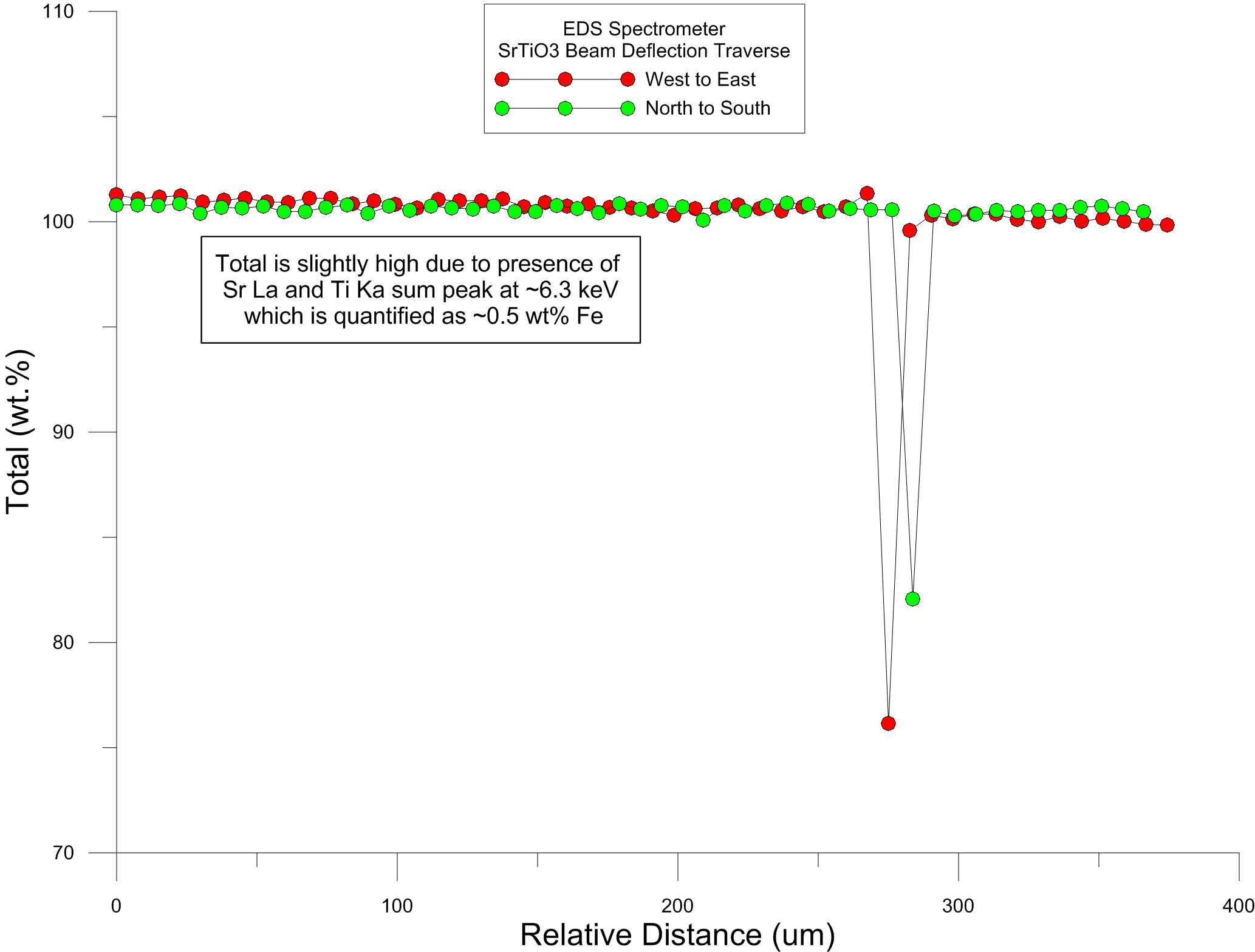 Of course while it's obvious that one would not want to perform a similar normalization to 100% for WDS intensities, because each spectrometer (and crystal) will have significantly different defocus curves, I wonder if a more subtle collimation effect could affect low energy versus high energy emission lines in the EDS spectra?