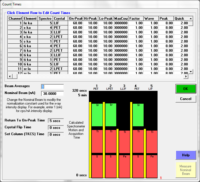 Both WDS and EDS spectra were acquired at the same time and processed separately. The WDS setup looks like this:
