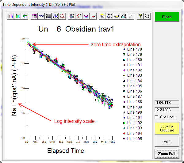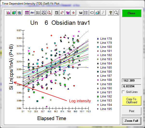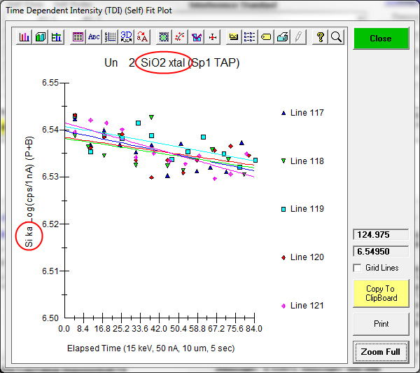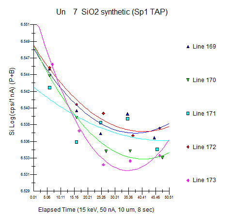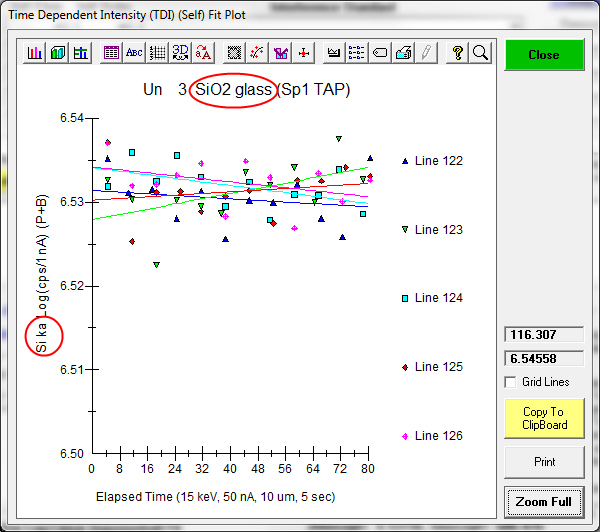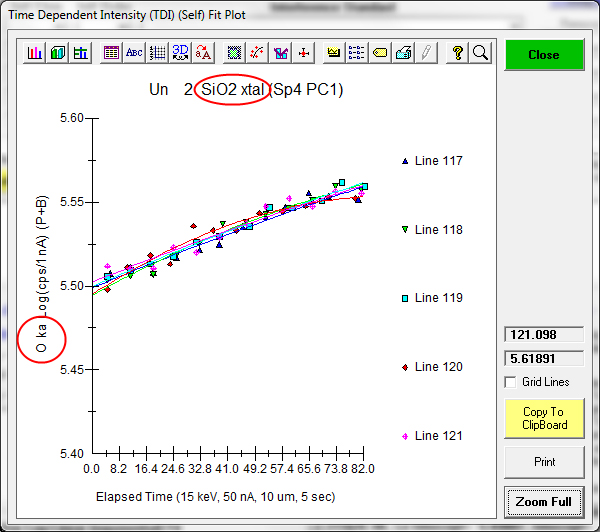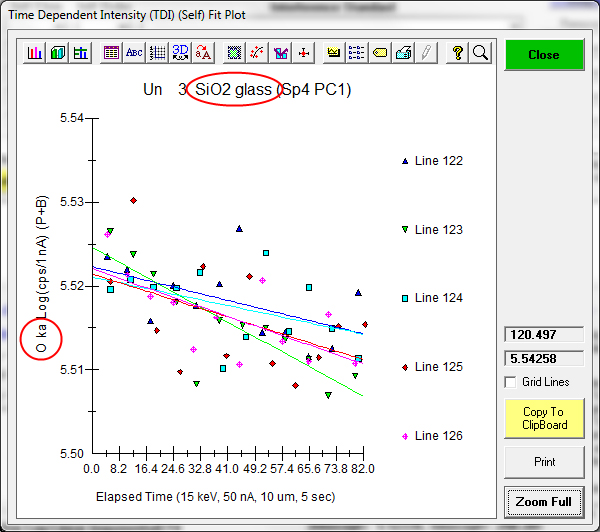 Ok, let's start by reviewing what we can do with the Time Dependent Intensity (TDI) correction in Probe for EPMA, which I believe is the best method currently available. By the way, to give credit where credit is due, Paul Carpenter suggested we use the term Time Dependent Intensity, rightly I would say, because then we are not assuming physics we don't fully understand (sample heating, sub-surface charging, ion migration, changes in the matrix absorption due to ion migration, etc.).