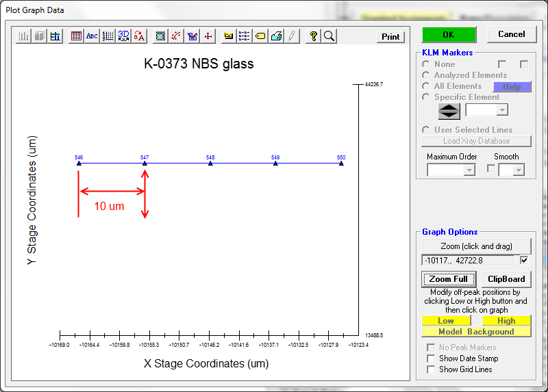 This can also be confirmed by displaying the x and y stage positions of these analyses as seen here: