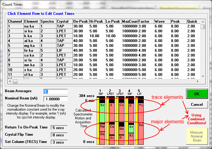 The reason for this is that although the TDI correction is PFE works well well for almost all beam sensitive samples (both "volatile" and "grow-in" artifacts as documented by many investigators, such as Stuart Kearns, http://www.geology.wisc.edu/~johnf/g777/AmMin/Humphreys_2006.pdf, and George Morgan, http://www.geology.wisc.edu/~johnf/g777/AmMin/MorganLondon2005.pdf), there are still some situations requiring an even more robust TDI correction due to the limited size of the sample (requiring a more focused beam), or element sensitivity (requiring a higher beam current).