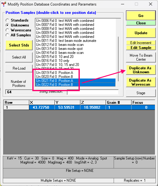 Alternatively if you want to hop between two stage positions, for capturing an image at each stage position, make a Position A sample and a Position B sample and duplicate them when both are selected: