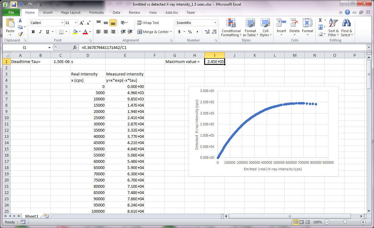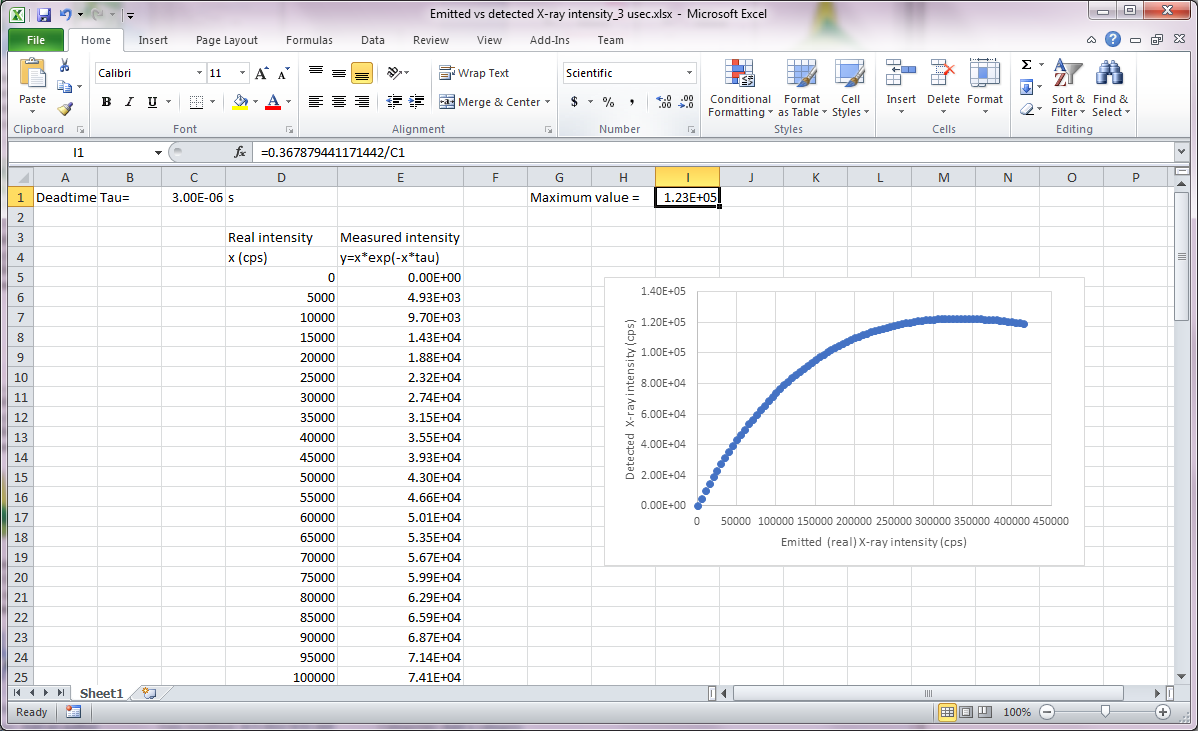 I'm not saying the exponential expression is not accurate (we are still evaluating the expression using both JEOL and Cameca data). What I was saying was that at sufficiently high dead times and/or count rates the exponential expression fails mathematically.
