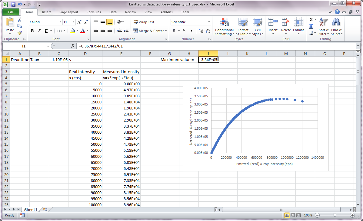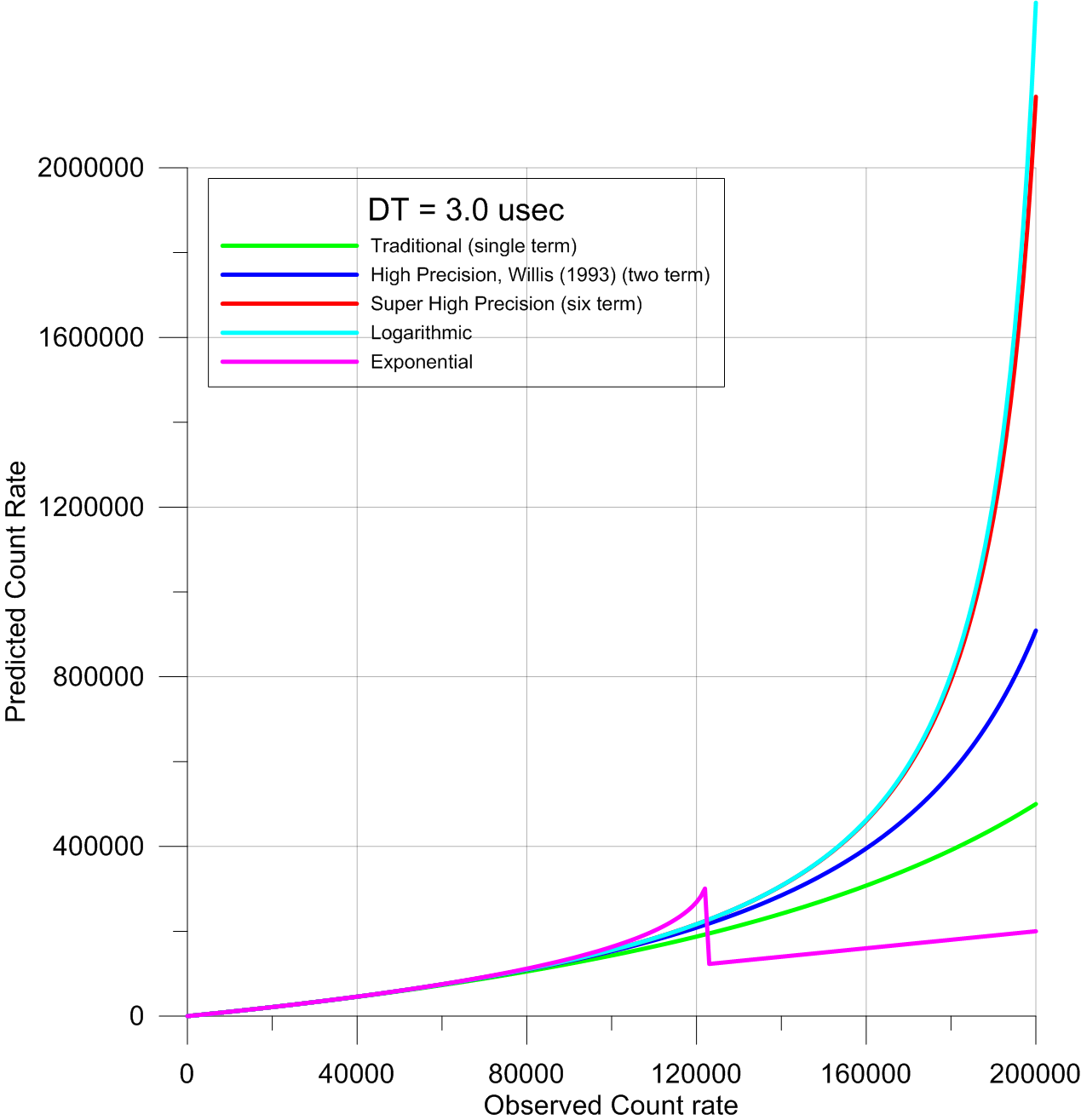 But again, the dead time constant in the exponential expression is very sensitive so at 1.1 usec, we can handle count rates up to 334K cps, so pretty high count rates: