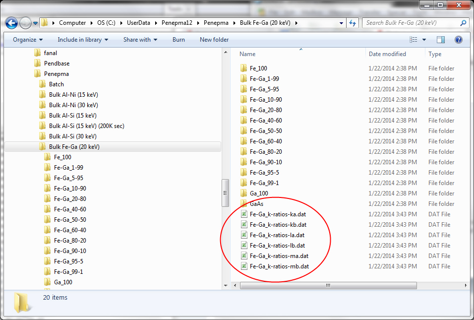 Now you simply click the Extract K-Ratios From Binary Compositions button and the application will automatically extract the intensities for calculating k-ratios for the Ka, Kb, La, Lb, Ma and Mb emission lines. If you need calculations for other emission lines you'll need to open the pe-intens-01.dat file in each folder and find the appropriate intensities manually.