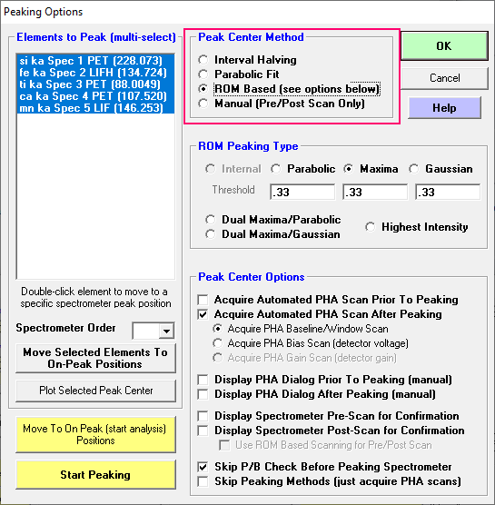 I just wanted to mention that when one really wants to precisely determine peak centroids, rather than using one of the automated or manual peaking methods, one should consider performing detailed count/step (not ROM based) wavescans and plotting them up in the Plot! window as described in this post: