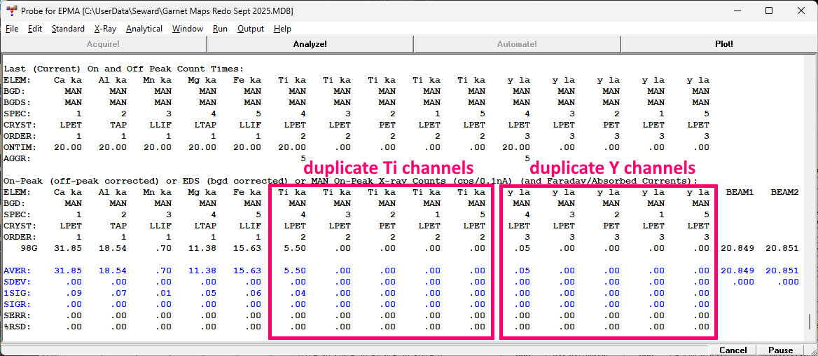 Recently one of our colleagues had a small problem trying to use the duplicate element aggregate feature in Probe for EPMA where duplicated elements are aggregated to improve sensitivity (see above posts).