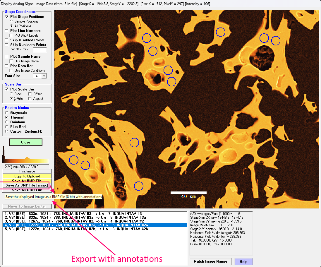 But the Output | Save Images To BMP Files menu does save all images as raw (unannotated) BMP, annotated BMP and GRD files with the stage calibration data as ACQ files for import into PictureSnap or PictureSnapApp.
