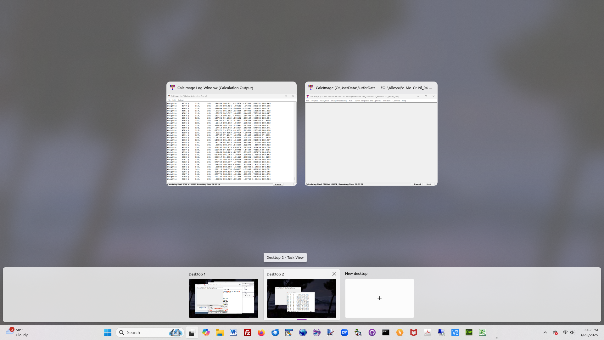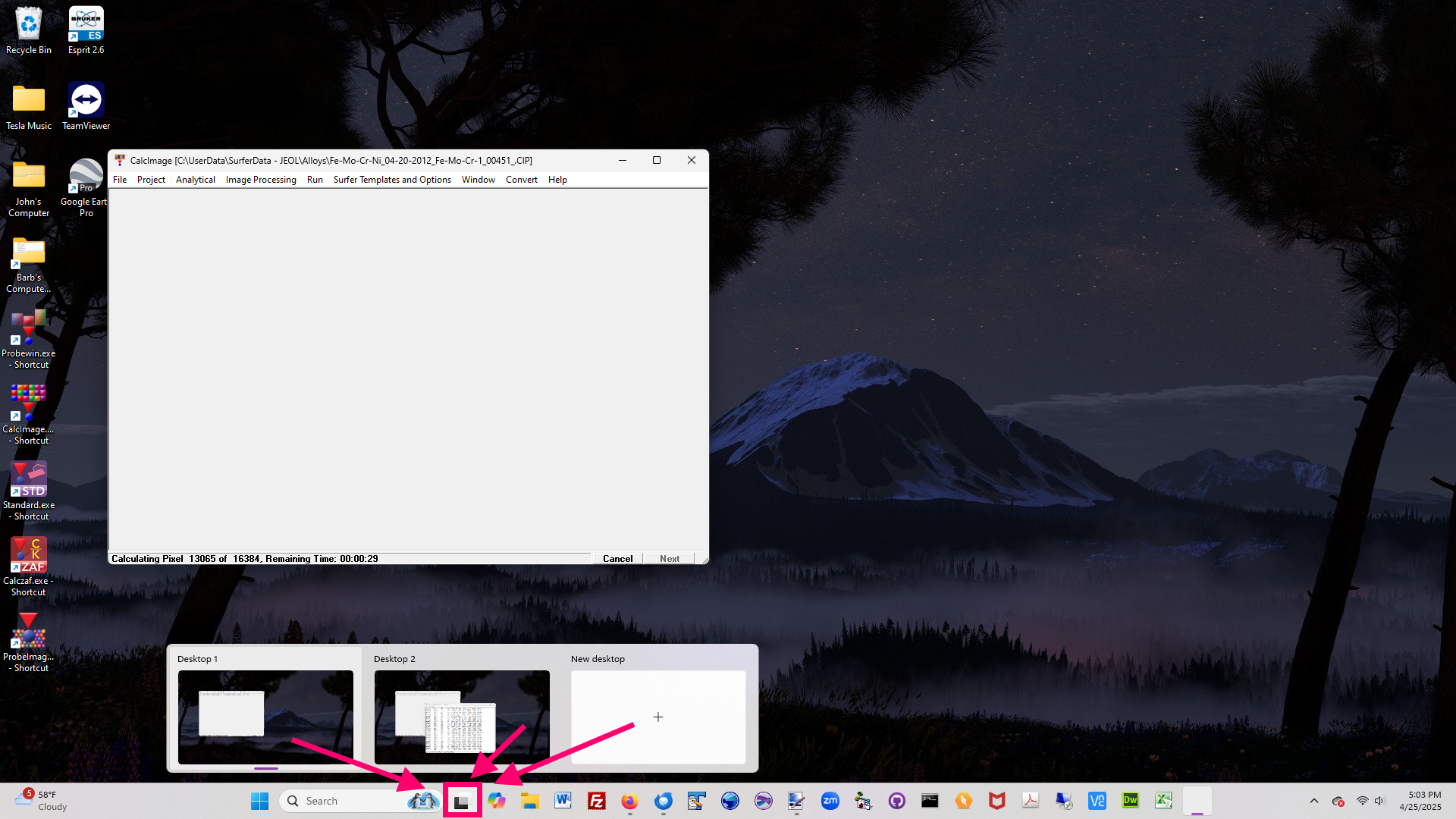 then click the blank new + New Desktop and you will get a clean blank copy of your current desktop. Then run Probe for EPMA (or any other application for that matter!), and open your previously acquired data!