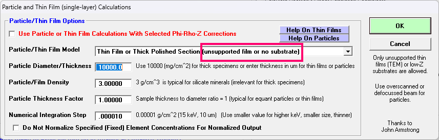 Ah, OK. Based on your "measuring carbon coat thickness" topic and the fact that you posted this in the sample prep board you got me off-track.  So when you mentioned the Calculation Options dialog I thought you were going into the Particle and Thin Film calculations dialog from there trying to determine coating thickness!