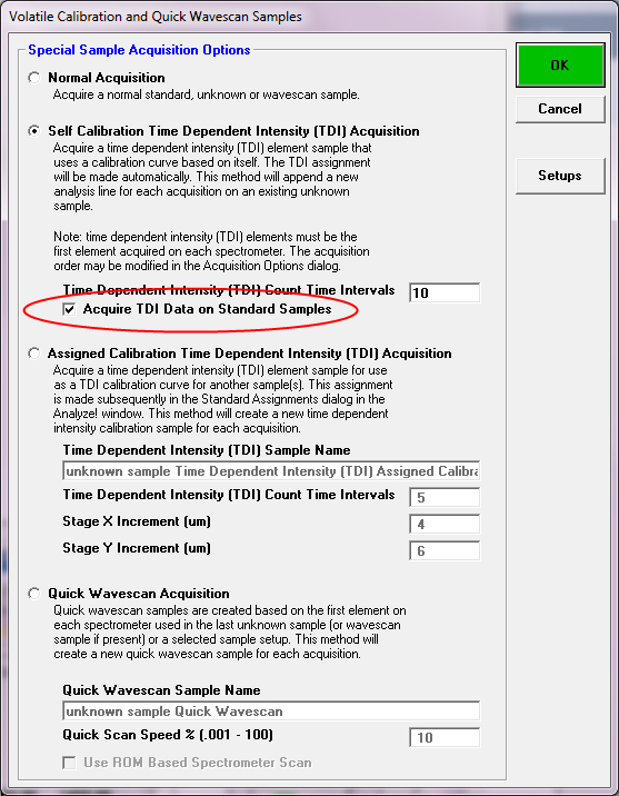 Also please remember that, although not always necessary, one can also "turn on" TDI acquisitions for standards also as seen here: