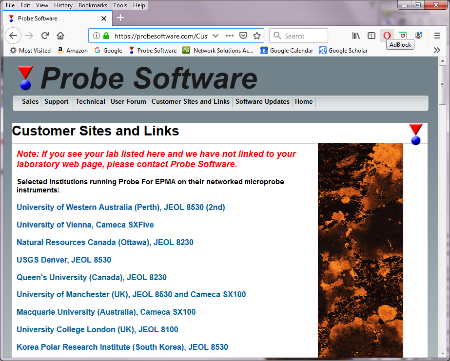 By the way, if your lab is using our Probe Software applications on your EPMA instrument, you should, first make sure that your lab is indeed listed! And if it is, please check that the link to your facility web pages is working by clicking on your lab. We try to keep those links updated, but sometimes they change...