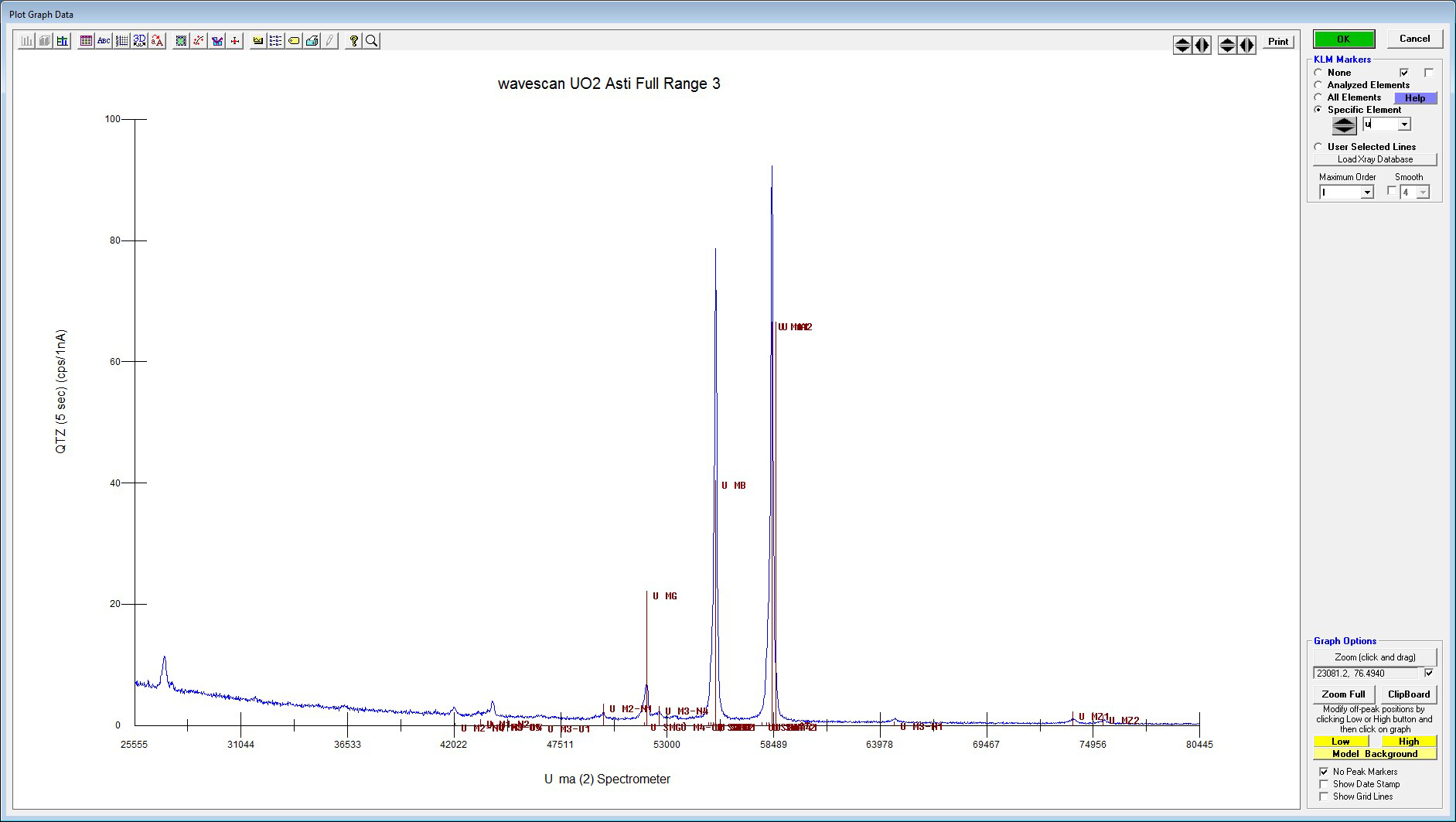 In doing a wavescan on uranium, I noticed that the intensity of Uma is considerably less than that of Umb.  This isn't just me--there are published scans that show the same thing (e.g. Walker, 1999, taken from Kleykamp)