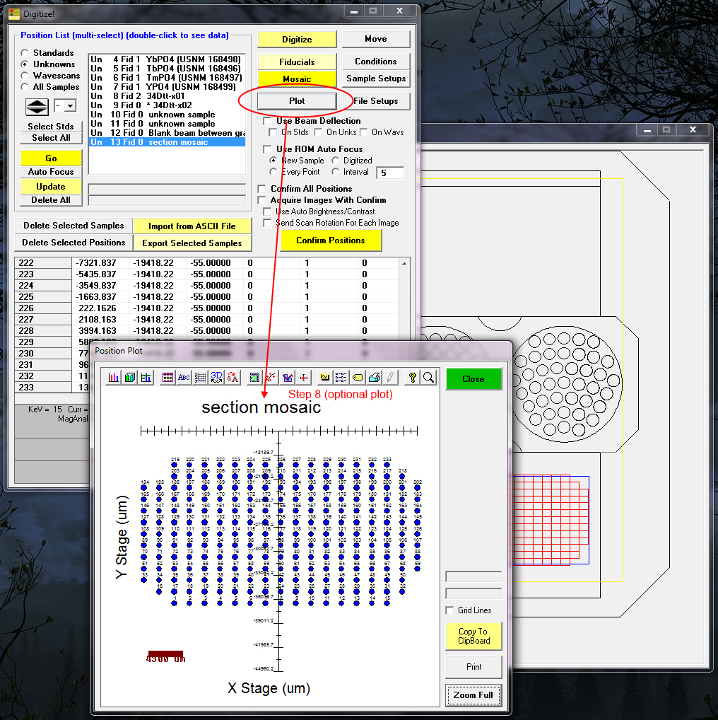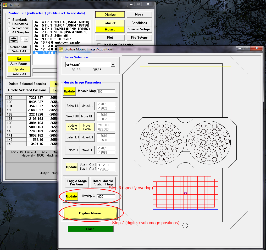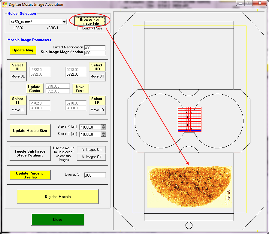 Finally specify the percent overlap and then click the Digitize Mosaic button to record the sub image positions to the position database as seen here: