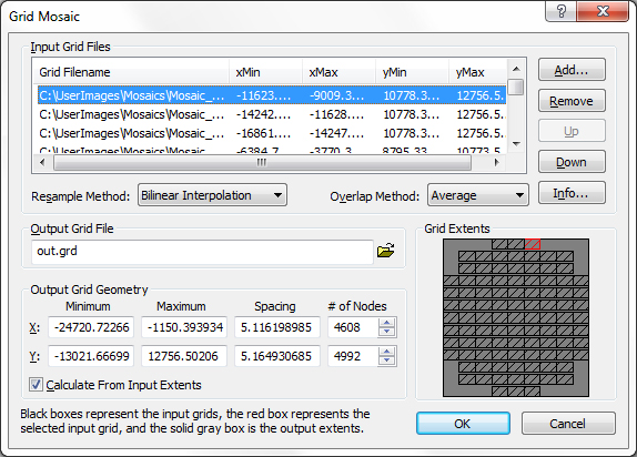 5. Set any options in the Grid Mosaic dialog and click OK. A new grid is created with all of the mosaicked grids.