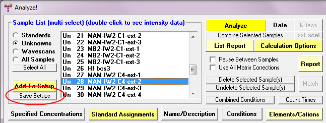 PS One other route is to export the element setups from the sample to the element database (SETUP.MDB) using this button: