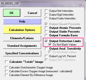 For those who didn't already know, one can calculate detection limit (and analytical sensitivity) maps in CalcImage when you quantify your x-ray maps. Here are some of the calculation options in CalcImage: