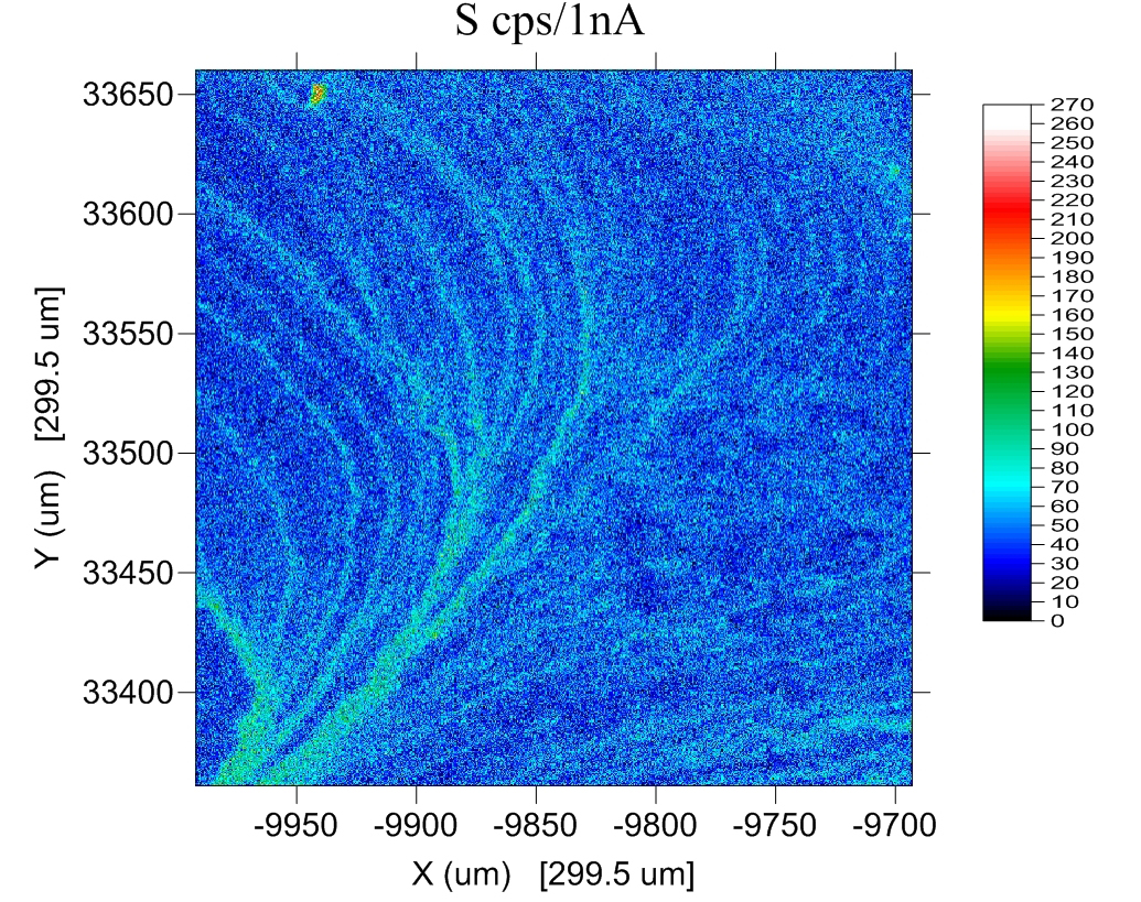 I've just got to show this large quantitative x-ray stage map of the aggregated sulfur photons from all 5 spectrometers of the SXFive in Adelaide acquired by Aoife Mcfadden- look at the 200 PPM level patterns- beautiful!