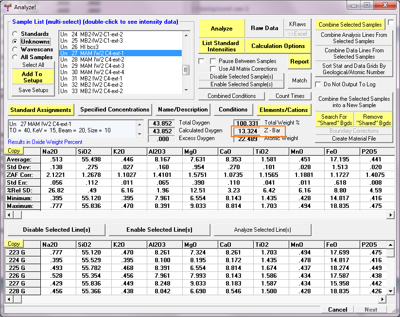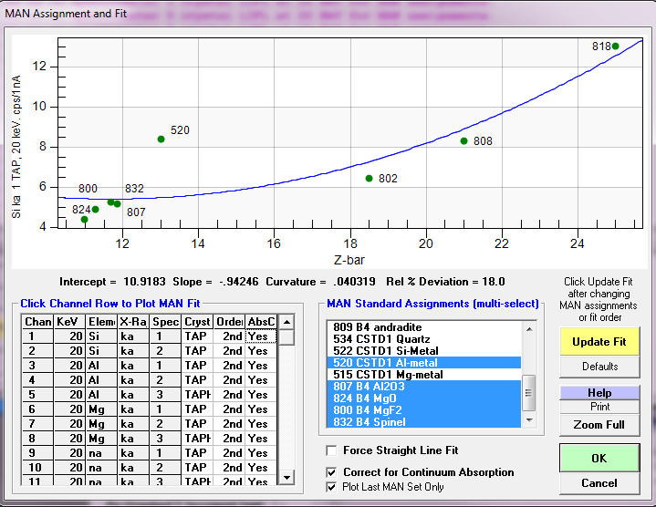 I was thinking that instead of disabling the offending samples so they don't get included in the MAN fit assignments, one could also just use the disable quant flag for the specific element causing the problem in the Elements/Cations dialog.  But when I look closer, although I am checking for the disable acquisition flag, I am not checking for the disable quant flag.