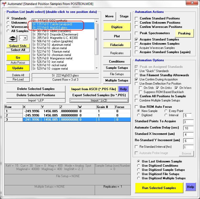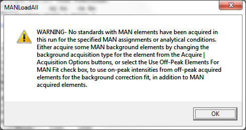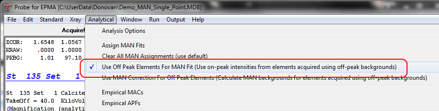 Why? Because our standards were acquired using off-peak backgrounds and so the program ignores the off-peak standards by default for the MAN calibration. So we can change that default by clicking this menu in the same Analytical menu as seen here: