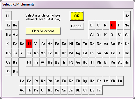 Or one can select multiple emitters by clicking the Periodic Table button and using the periodic table dialog as seen here: