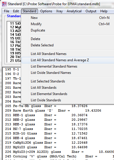 Helpful hint: if you aren't sure which of your standards might have similar average Z values compared to your unknowns, you can use this handy menu the the Standard.exe app as seen here: