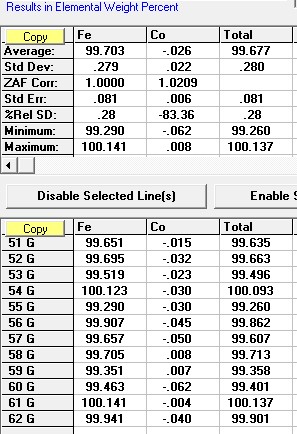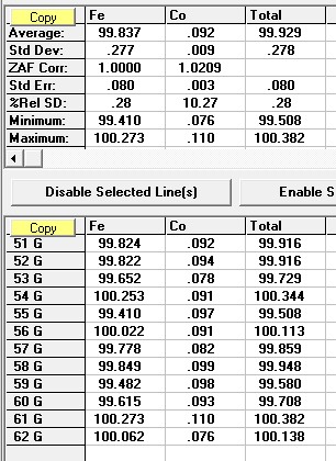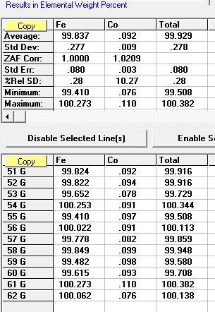 As the Cameca is currently busy doing other things, I decided to test this out using our JEOL to see if I could replicate and simplify the problem using just the pure Fe and Co standards.