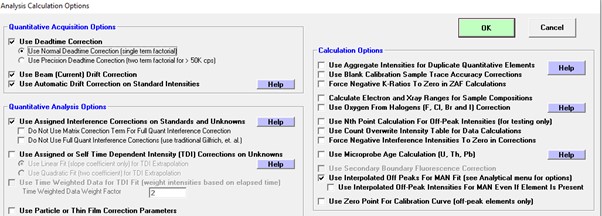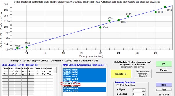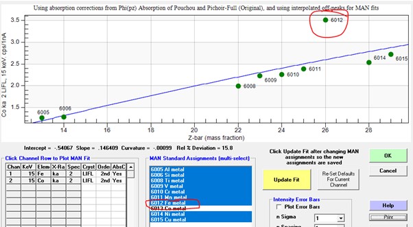 Please understand that there is nothing extraordinary about using the MAN background correction.  My guess is that, at least for geologists who utilize the software, the MAN correction is used almost all the time, at least for the major and minor elements (note that one can utilize a mix of MAN and off-peak elements for any given sample setup). The reason for it being utilized so often, is that the MAN correction saves so much time time (and improves precision) on major, and even minor elements, where very small accuracy errors in the MAN calibration curve, are generally smaller than the precision of the peak intensity measurement.